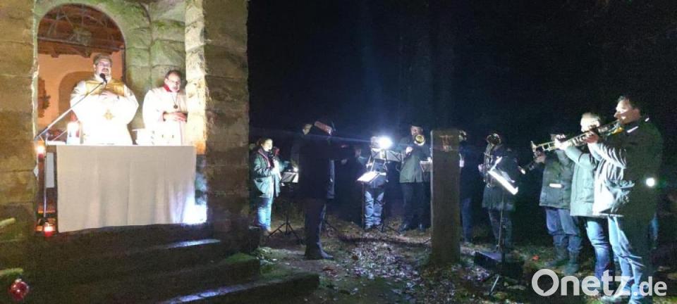 Nach zwei Jahren ohne der Weihnachtsatmosphäre bei der Kapelle zur Heiligen Staude, konnten dieses Jahr endlich wieder viele Gläubige die Heilige Nacht im Wald über Weiden feiern. Pfarrvikar Achim Dittrich zelebrierte die Mitternachtsmette zu den Klängen der, seit vielen Jahren treuen und privat engagierten, Bläser der Stadtkapelle Weiden. So pilgerte auch dieses Mal zur mitternächtlichen Stunde eine große Anzahl von Bürgern dorthin und zeigte beeindruckend, wie wichtig dieses stimmungsvolle Erlebnis den einheimischen Gläubigen ist. Ein wunderschöner Christbaum vor der kleinen Kapelle und andere Zeichen von Unterstützern dieses Brauches machen die Bedeutung dieser Messe offensichtlich und werden hoffentlich noch viele weitere Weihnächte bereichern. Weder die Zeit während Corona, als auch "unwinterliches" Wetter konnten dem einen Abbruch tun.