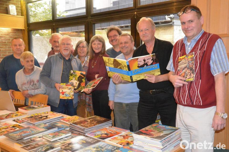 Eingeladen hatte der Weidener Comic-Club unter Leitung von Uli Narr. An einer Neuauflage der Flash-Gordon-Comics aus den 30-er Jahren habe er höchstpersönlich mitgewirkt, erzählte Renner. Den nagelneuen zweiten, dicken Band der Reihe hatte der Sprechblasen-Experte und Pressesprecher des Clubs am Wochenende mit nach Weiden gebracht.