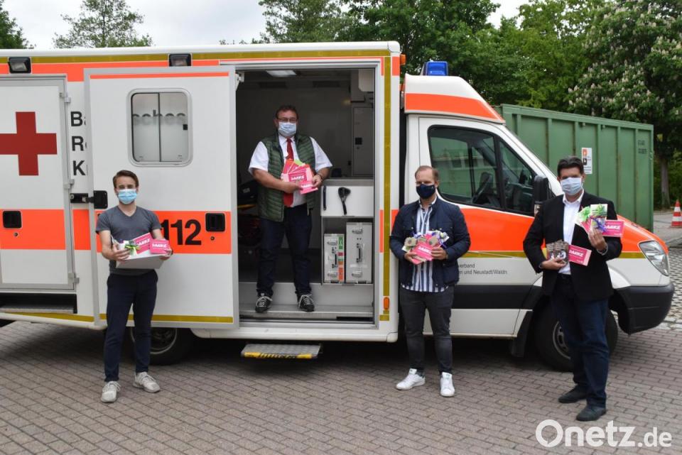 BRK-Kreisgeschäftsführer Sandro Galitzdörfer und Wachleiter Bernhard Kick nahmen das Geschenk dankend entgegen. 110 Kameraden hätten „massivst tolle Arbeit“ in der Coronakrise geleistet, sagte Galitzdörfer. Er dankte auch allen Arbeitgebern, die ehrenamtliche Rotkreuz-Kräfte freigestellt hatten.