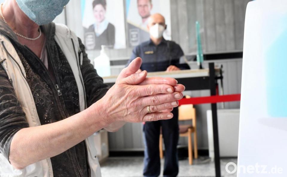 Allerdings ist momentan etwas mehr Zeit einzuplanen. Bereits vor dem Betreten des Inneren des Gerichtsgebäudes, wo, wie seit Langem üblich, Personen- und Taschenkontrollen durchgeführt werden, erwartet die Besucher ein Wachtmeister. Besucher haben schriftlich Fragen zu Erkältungssymptomen, zu Kontakten mit nachweislich infizierten Personen und zu Aufenthalten in einem Risikogebiet zu beantworten. Nach Rücksprache mit dem Vorsitzenden Richter können Besucher vom Sicherheitspersonal zurückgewiesen werden. Auch ein Desinfektionsständer ist hier im Vorraum des Gebäudes aufgestellt. Um zwei Meter Mindestabstand zu anderen wird gebeten. Wegen der Größe der jeweiligen Sitzungssäle ist auch eine Beschränkung der Zuschauerzahl möglich.