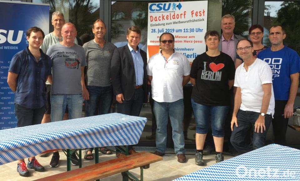 CSU-Vorsitzender Roland Steger begrüßte bei herrlichem Wetter auch Stadtrat Heiner Vierling als Schirmherrn. Der Name des "Dackeldorffestes" im Sprengel Lerchenfeld geht auf den krummbeinigen Dackel des Zimmermanns Stärzl zurück, der, so erzählt es die Historie - mit seinem Herrchen hier regelmäßig spazieren ging. Den Erlös aus dem Fest wollen die Christsozialen für die weitere Ausstattung des neuen Pfarrheimes spenden.
