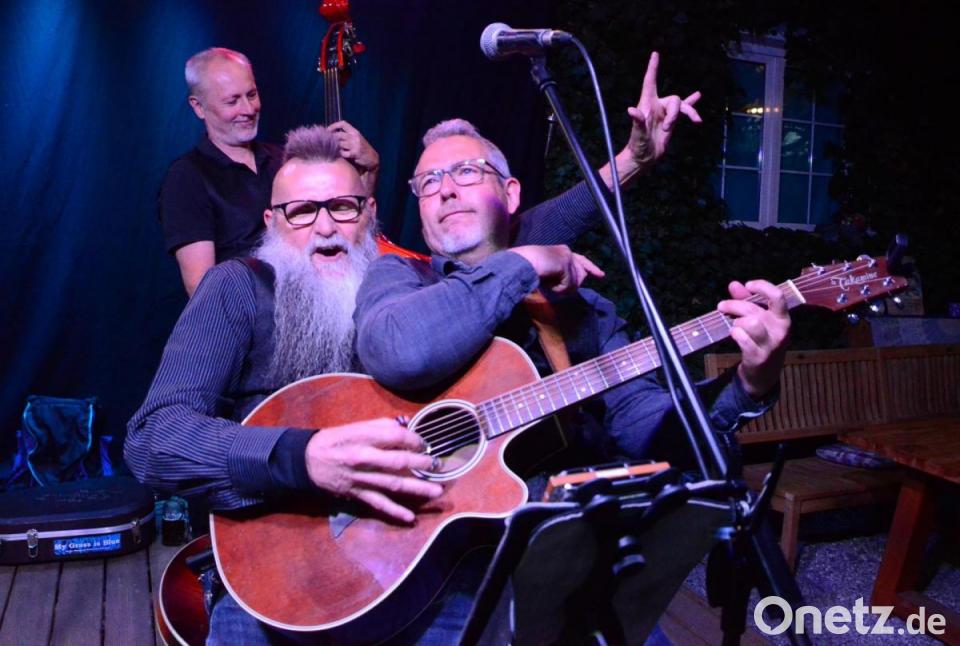 Das war schon eine spaßige Truppe, die am Freitagabend auf der "Live Stage" am Lagerfeuer die Open-Air-Saison im "Kulturbahnhof Parapluie" einläutete. Wo hat man schon mal Gelegenheit, einen Banjo-Spieler zu erleben, der aussieht wie eine Mischung aus Dusty Hill von ZZ Top und Magua, dem Gegenspieler des Letzten Mohikaners. Der sich sportlich am Bühnenbalken hochzieht und im Übereifer beinahe das komplette Equipment der Band demoliert? Oder als Hintermann die Klampfe seines vor ihm stehenden Gitarristen zupft? "De Waltons" hieß die Combo.
