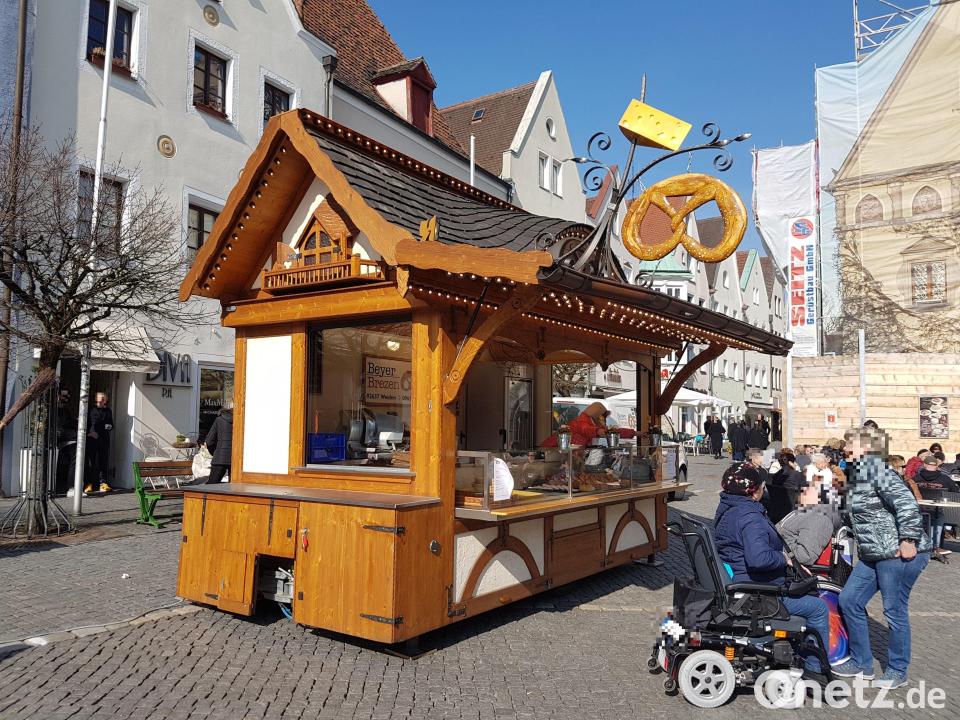 "Die Diebe können eigentlich nur zu zweit gewesen sein", vermutet Philipp Beyer. Seit vergangener Woche fehlt auf seinem Verkaufswagen der Bäckerei Beyer die knapp 70 Zentimeter große Breze aus Holz samt gusseisernem Gestell. Der Wagen, der sonst bei Festen zum Einsatz kommt, stand die vergangenen Monate auf dem Macerataplatz vor dem Einkaufszentrum NOC. Irgendwann zwischen dem 1. und 4. Januar machten sich bislang unbekannte Diebe an dem Wagen zu schaffen, wie die Polizei am Donnerstag mitteilte. Sie stiegen auf das Dach und montierten das Werbesymbol ab. Von den Tätern fehlt bislang jede Spur.