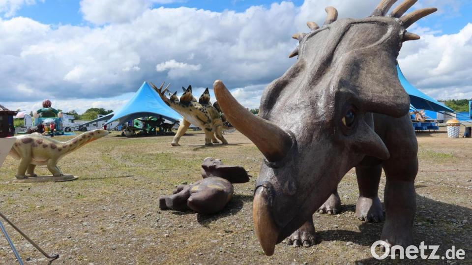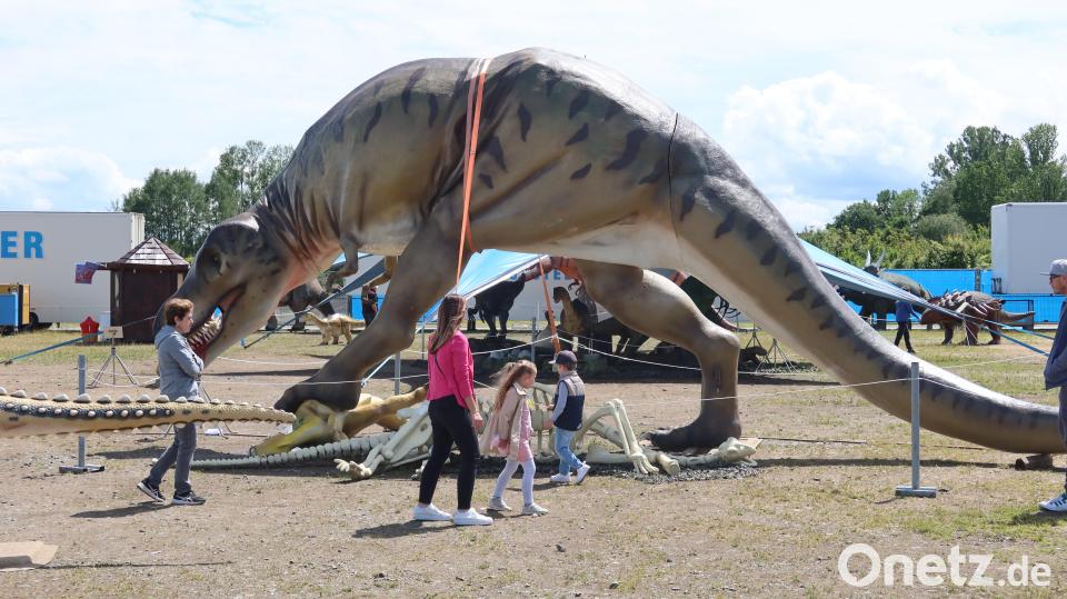 Es gibt eine Dino-Hüpfburg, eine Dino-Bimmelbahn und viele Möglichkeiten, sich vor den urzeitlichen Ungetümen fotografieren zu lassen. Geöffnet ist täglich von 14 bis 18 Uhr. Am Samstag und Sonntag von 11 bis 18 Uhr. Die Ausstellung gastiert noch bis 23.6. an der Conrad-Röntgen-Straße.