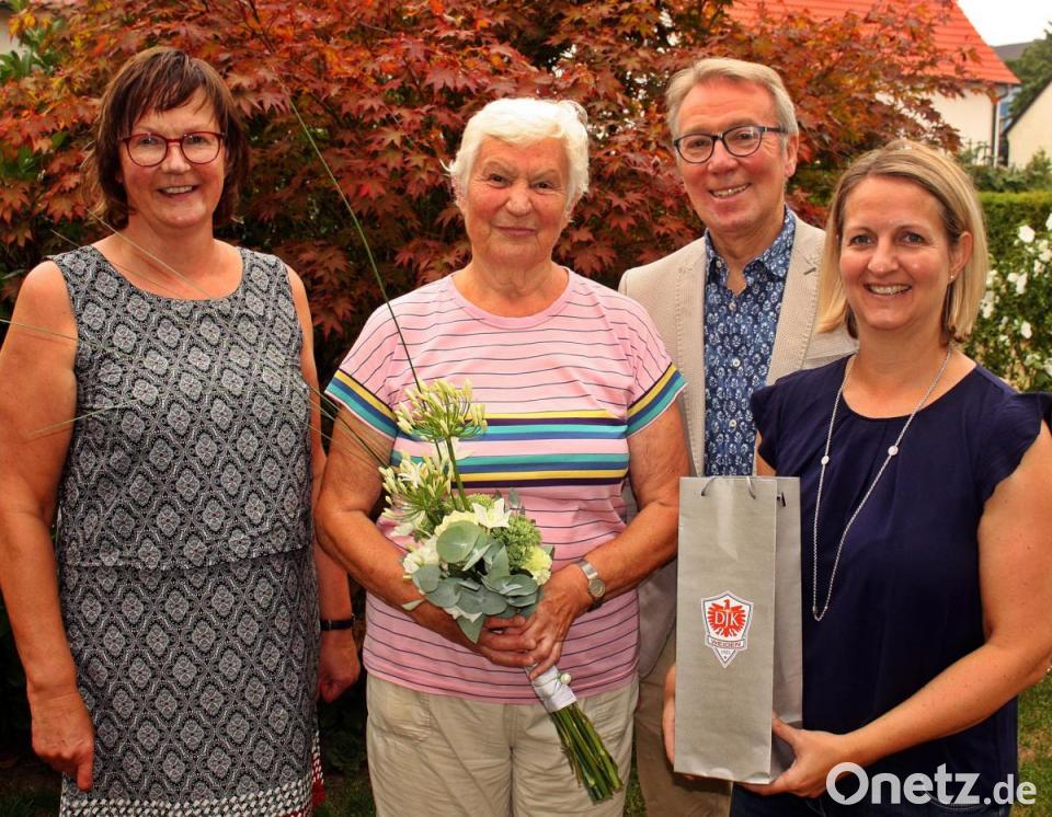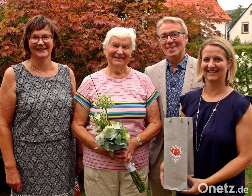 Ihren runden Geburtstag feierte Rosemarie Meier mit einigen Gratulanten unter der Pergola in ihrem Garten. Zum 80. rückte die DJK Weiden mit Vorsitzendem Reinhold Wildenauer und Diözesanfachwartin Heike Angerer mit einem Geschenk an. Über 30 Jahre leitet das Geburtstagskind die Frauengymnastik. „Über vier Jahrzehnte bist du im Seniorenkreis beheimatet, hast schon mit Ehemann Georg und Hans Stock fünfzehn Jahre mitgearbeitet und nun die weiteren letzten 15 Jahre übernahmst du auch hier die Führung “, lobte Wildenauer die ehrenamtliche Arbeit von Meier. Für ihre Leistung bekam sie vor Jahren die Auszeichnung mit dem Ludwig-Wolker-Relief.