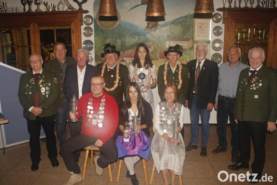 Die Adlerschützen Mitterhöll haben durch die Bank neue Regenten. Sowohl Simon Lukas und Wolfgang Weiß als auch Isabel Erl mussten bei der Königsproklamation am Samstag im Schützenheim ihre Ketten abgeben. Diese hängten Schützenmeister Alois Lukas, Reinhard Meier, Präsident des Stadtverbandes für Leibesübungen (SfL), sowie Stadtrat Wolfgang Pausch nun Claudia Rauh (324,8-Teiler) als neue Königin mit dem Luftgewehr (LG) um. Die Wurstkette ging an Claus Fiedler (332,3). Neuer Würdenträger bei der Luftpistole (LP) ist Michael Panhans (529,0-Teiler). Hinter ihm platzierte sich Richard Förster (1072,0). Als Jugendkönigin löste Junia Lukas (682,9) Isabel Erl (1105,0) ab.
