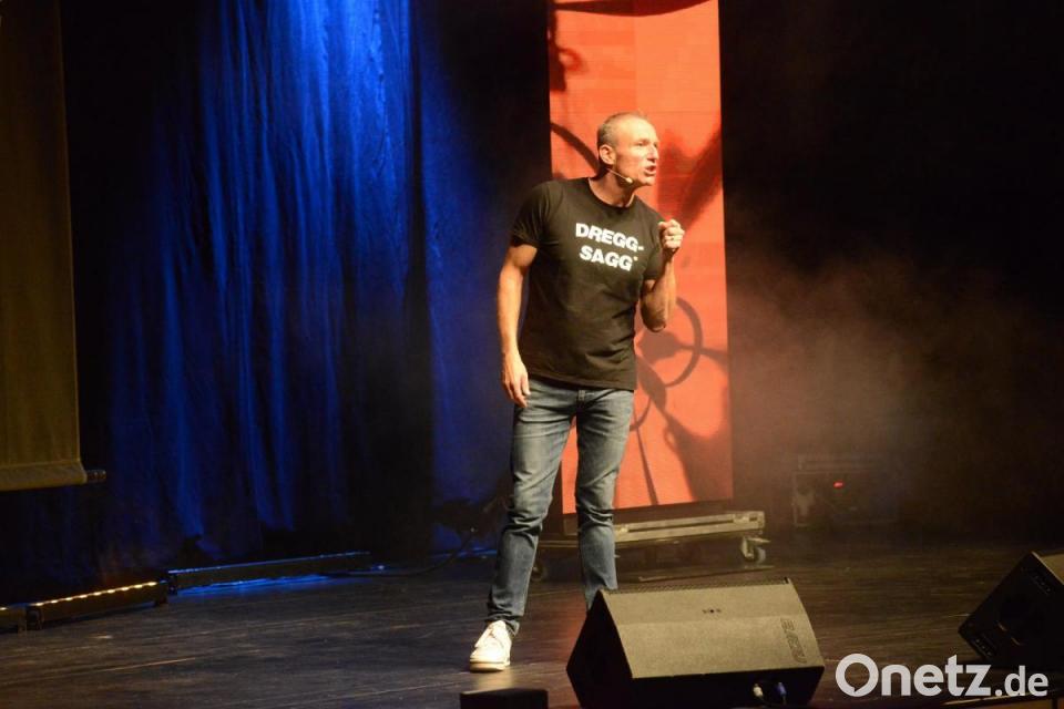 Satte drei Stunden begeisterte am Samstagabend der unterfränkische Kabarettist Michl Müller seine Fans in der nicht ganz ausverkauften Max-Reger-Halle. Bei vielen Themen traf er wieder den Nagel auf den Kopf. So beispielsweise bei der Erkenntnis, dass die Menschen heutzutage „hoch vergeistigt“ durch die Wälder rennen und sich dann noch hinlegen, auch wenn's in einen Ameisenhaufen ist.