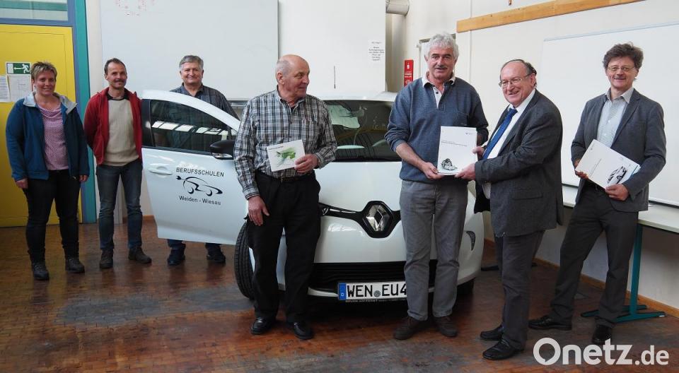 Elektromobilität und Hochvolttechnik heißt das neue Lernfeld. Gemeinsam mit der Berufsschule Wiesau war kürzlich dafür ein Elektroauto angeschafft worden. Dabei, dass die Technik dieses Elektroautos im Unterricht auch genau erläutert werden kann, hilft eine Spende des Autohauses Pröls aus Vohenstrauß. Geschäftsführer Wolfgang Pröls übergab der Europaberufsschule eine hochwertige Magnettafel sowie lizenzgeschützte, umfangreiche technische Unterlagen, die als Unterrichtsmaterial eingesetzt werden dürfen. Der Spender kümmert sich auch darum, dass die Lehrer entsprechend geschult werden. Den Wert der Spende schätzen die Beteiligten auf circa 2000 Euro. „Wir freuen uns dass die Zusammenarbeit unserer Schule mit Betrieben in der Region auch immer wieder zu solchen Spenden führt“, sagte Berufsschuldirektor Josef Weilhammer. Acht Klassen mit 250 Schülern profitieren von der Zuwendung. „Bisher musste am Schulungsstand ausgebildet werden, jetzt sind wir gut ausgestattet“, berichtete Berufschullehrer Fritz Herrmann.
