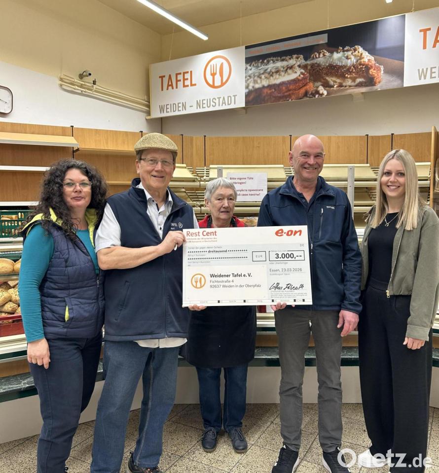 Die Mitarbeitenden des E.on-Konzerns in Deutschland, zu dem auch die Bayernwerk-Gruppe gehört, haben der Tafel Weiden-Neustadt an der Waldnaab eine Spende in Höhe von 3.000 Euro überreicht. Lothar Haberzeth, Betriebsratsvorsitzender des Bayernwerks für die Region Ostbayern, übergab den symbolischen Spendenscheck an Diana Herrmann und Rainer Sindersberger von der Weidener Tafel. Der Hilfsfonds "Rest Cent", der durch freiwillige Verzichtserklärungen der Mitarbeitenden auf Netto-Cent-Beträge ihres Lohns gespeist wird, ermöglicht diese Unterstützung. Der so gesammelte Betrag werde vom E.on-Konzern verdoppelt, teilte der Konzern mit.