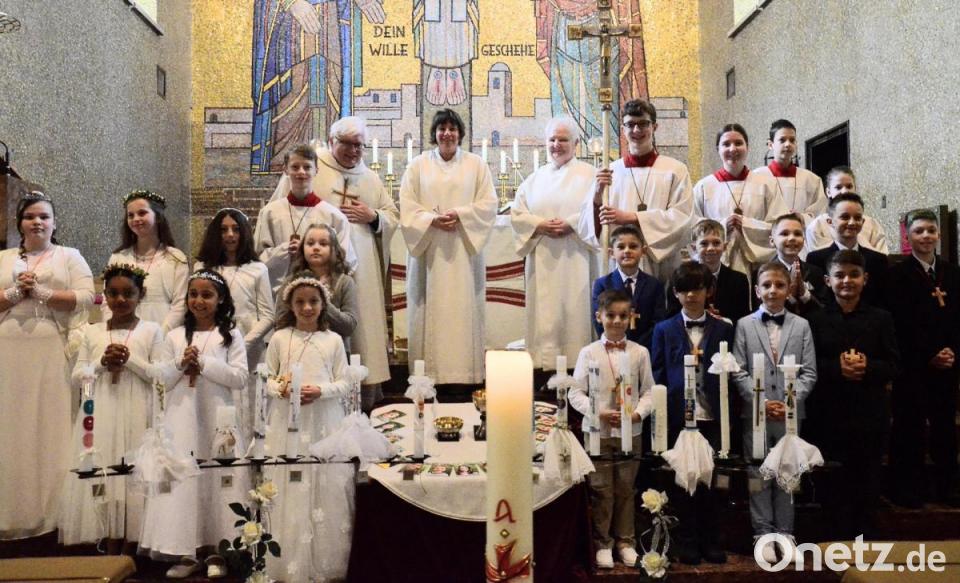 Neun Buben und sieben Mädchen feierten gemeinsam in der Herz-Jesu-Kirche ihre Kommunion. Unter der Leitung von Chordirektor Peter Kosmus umrahmte der Kirchenchor den Festgottesdienst musikalisch. Jeden Sonntag fänden Gläubige in der Kirche zusammen, fuhr Pfarrer Schubach fort. "Jesus kommt uns so nahe, dass er wirklich zugegen ist." Die Worte, das sei sein Blut, sein Leib, bezeichneten Jesu reale Gegenwart. Vorbereitet wurden die Kommunionkinder von Stadtpfarrer Schubach, Gemeindereferentin Doris Schmidt und dem Kindergottesdienstteam.