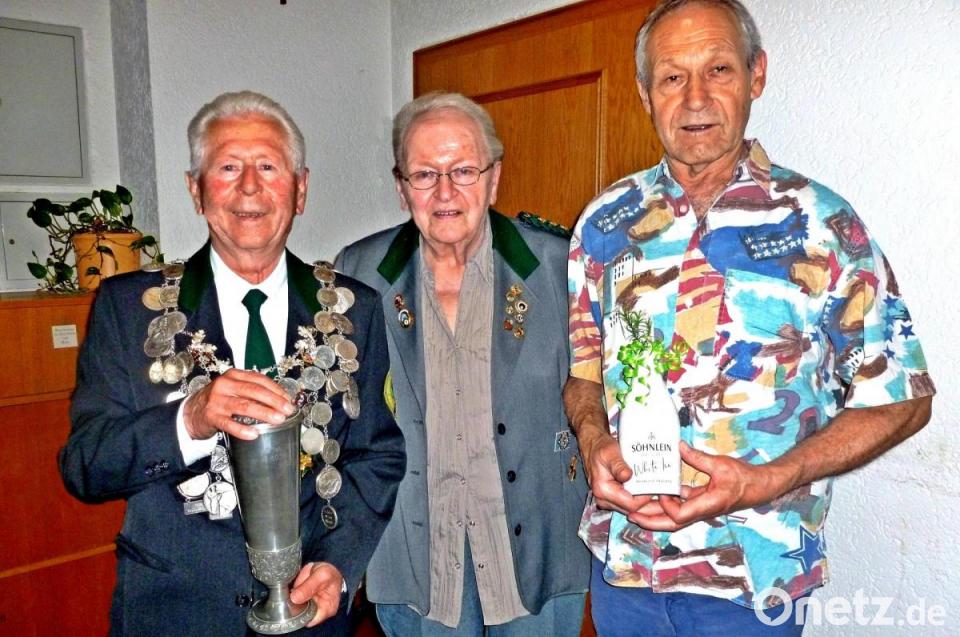 Vor der Pandemie war Erwin Rößler Schützenkönig bei der Schützengesellschaft Almenrausch. Jetzt holte er sich wieder n den Titel. Mit einem 105-Teiler gewann Rößler vor Günter Christian (333). Schon mehrere Male war Rößler mit dem Luftgewehr der Beste. Schützenmeisterin Sieglinde Nordgauer hängte ihm die Kette um und überreichte den Siegerpokal. Nordgauer händigte an den Vizekönig anstelle der Wurstkette eine Flasche Sekt aus.