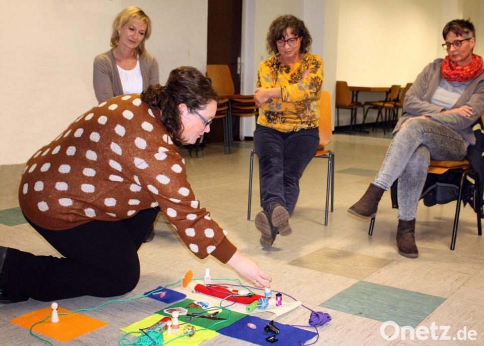 Problematiken abwenden heißt die Lösung, doch wie? Die Referentin unterstrich, dass das Paar oder die Familie bewusst alles miteinander angehen, die Sachlage unbedingt entschleunigen und einen Gang zurückschalten sollte. "Weniger Reize akzeptieren, heißt ein intensiveres Leben miteinander zu führen. Natürlich sind hier Ansprüche auch herunterzufahren, was schwer sein kann. Oftmals ist es aber unausweichlich", so die Referentin. Das Wichtigste in der Familiengründungsphase sei das Familienmanagement. Corinna Ferst bemühte Spielfiguren, baute Situationen als Anschauungsunterricht vor den Zuhörerinnen auf.