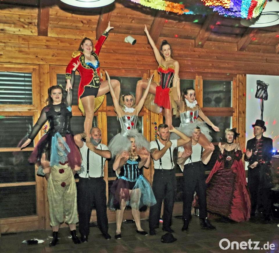 Als Höhepunkt kam eine Abordnung des Hofstaats der Narrhalla Weiden mit Präsident Christian Würdinger und dem Weidener Prinzenpaar. Die Showtanzgruppe bot eine Freak-Show unter dem diesjährigen Motto „Nachts, wenn alles schläft …“. Aber der Schein täuschte gewaltig und alle Faschingsgäste waren hellwach bei dem schwungvollen Tanzauftritt und klatschten begeistert mit. Es gab auch die geforderte Zugabe. An die Hauptorganisatoren des Faschingsballs verlieh das Prinzenpaar die Narrhalla-Faschingsorden. Bis weit nach Mitternacht spielten die „Topics“ und die maskierten Einhörner, Clowns und Musketiere schwangen das Tanzbein zu Stimmungshits.
