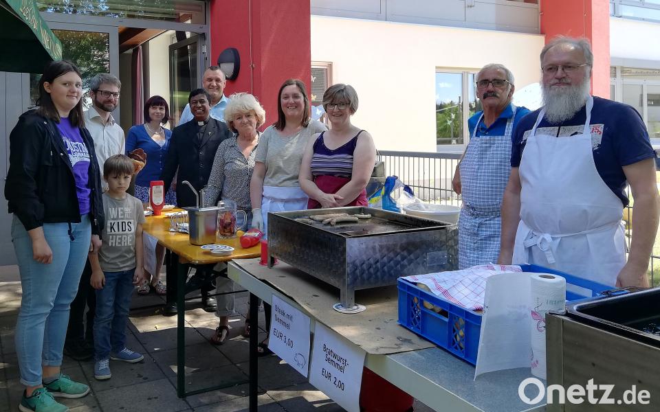 Anschließend feierten die Besucher auf der Pfarrwiese. Die Küche zuhause blieb kalt. Die Gäste holten sich saftige Steaks oder leckere Bratwurstsemmeln, wobei Johann Reichl und Wolfgang Gleissner als Grillmeister fungierten. Der Zuspruch war so groß, dass zusätzliche Sitzgelegenheiten herbeigeschafft werden mussten. Erfreulich war die große Anzahl an Kuchenspenden. Die 30 Torten und Kuchen fanden reichlich Abnehmer. Bis in den Nachmittag verweilten die Besucher und nutzten die Gelegenheit zu Gesprächen. Zahlreiche helfende Hände sorgten dafür, dass das Fest reibungslos verlief.
