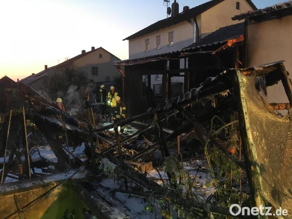 Mit mehreren Atemschutztrupps bekämpfen die Einsatzkräfte aus Neunkirchen und Frauenricht die Flammen. Sie haben den Brand erst nach längerer Zeit unter Kontrolle, da immer wieder Glutnester aufflammen. Das Gartenhaus, aber auch die Lauben brennen total aus. Auch die beiden Garagen werden stark in Mitleidenschaft gezogen. Nach Information des Einsatzleiters Rettungsdienst wird niemand verletzt, jedoch zwei Hausbesitzer vorsorglich im Rettungswagen behandelt.