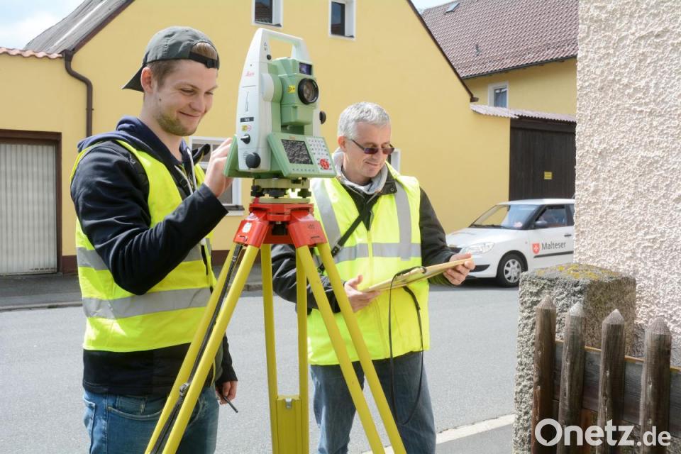 Ihr Betreuer, Ingenieur Michael Kraus vom Amt für ländliche Entwicklung in Tirschenreuth, erklärt die Details: "Im Tunnel wurden bereits 60 Dübel als Festpunkte befestigt. Jetzt geht es darum, diese einzumessen, damit Laser-Scanner exakt positioniert werden können." Die unterirdischen Arbeiten am Donnerstag sind laut Kraus eine "enge Geschichte": Der Tunnel ist bei einer Höhe von circa 1,40 Meter nur rund 70 Zentimeter breit, schlecht beleuchtet und teils verschlammt.