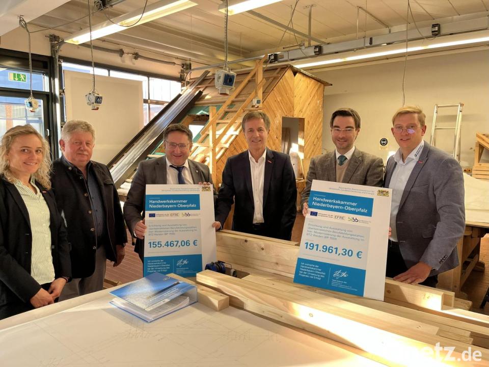Die Handwerkskammer Niederbayern-Oberpfalz hat Förderbescheide für die Ausstattung ihres Bildungszentrums in Weiden erhalten. Tobias Gotthardt, Staatssekretär für Wirtschaft, Landesentwicklung und Energie, übergab die Bescheide in Höhe von 155.467 Euro und 191.961 Euro, die auch EU-Mittel enthalten, wie es in einer Pressemitteilung der Handwerkskammer heißt. Die Förderungen ermöglichen die Anschaffung moderner Geräte wie einer 4-Seit-Glatthobelmaschine und eines Schulungsfahrzeugs mit Elektroantrieb. Hans Schmidt, stellvertretender Hauptgeschäftsführer, nahm die Förderbescheide für die Handwerkskammer entgegen. „Das Handwerk in Ostbayern ist ein wichtiger Stabilitätsfaktor für unsere Region“, so Schmidt.