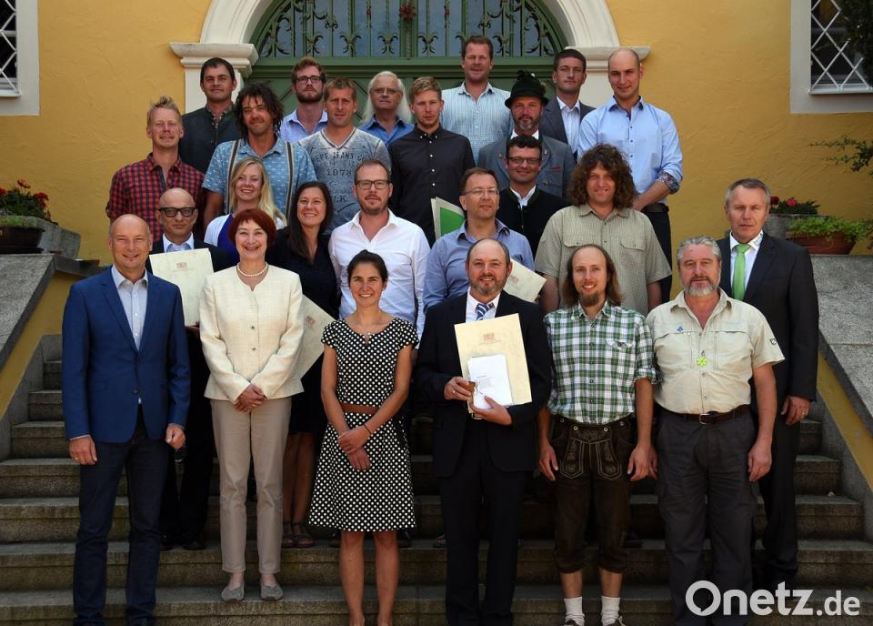 "Sie haben Ihrer Ausbildung die Krone aufgesetzt. Die Welt steht Ihnen offen", sagte BBV-Bezirkspräsident Josef Wutz. An die neuen Agrarbetriebswirte überreichte Petra Hager vom Ehemaligenverband Hofschilder, die auf die Qualifikation der Betriebsinhaber hinweisen. Einen Tipp aus Erfahrung für alle Absolventen hatte Alois Lukas als Vertreter der Stadt Weiden: "Hört mit dem Lernen nicht auf, weil ich auch mit 70 Jahren in der Landwirtschaft immer noch was lernen kann. Wer sich immer auf dem Laufenden haltet, wird im Leben den meisten Erfolg haben."