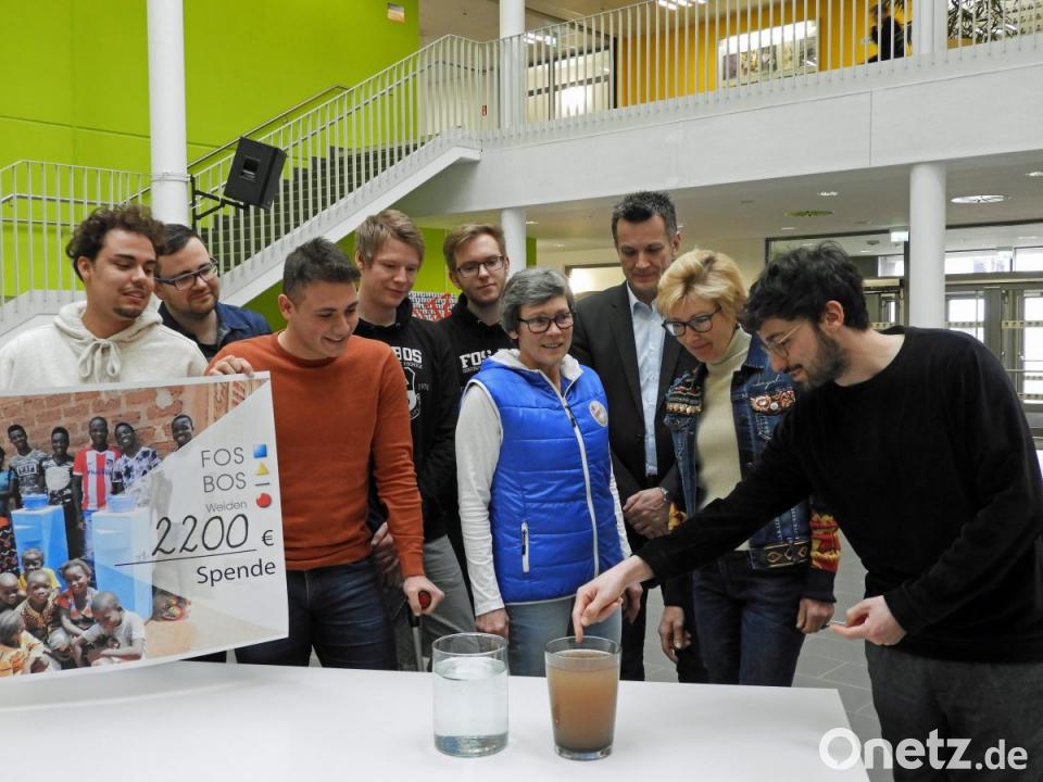 „Tolle Spende. Das wird eine große Filteranlage für eine Schule mit allem drum und dran“, sagte der ehemalige Schüler der FOS/BOS. Mit einem solchen Filter können täglich rund 600 Schüler mit sauberem Trinkwasser versorgt werden. Gemeinsam mit 19 weiteren Studenten setzt sich Vogel für das Menschenrecht „sauberes Wasser“ in Kenia und Burkina Faso ein. Dazu entwickelte das Team von „Hydro Solution“ einen speziellen Biosand-Filter, der aus einfachsten Mitteln herzustellen und auch für Laien gut handhabbar ist. Das Projekt stieß bei den Schülern auf Begeisterung. „Die Spenden kamen absolut freiwillig und ohne Druck“, erklärte Studiendirektorin Ruthild Käsbauer als Initiatorin der Spendenaktion. Dass zwei Schwestern der Integrationsvorklasse im Kreis ihrer Familie sammelten, um das Projekt mit einer größeren Summe zu unterstützen, beeindruckte Vogel. Neben den Spenden von Schülern, Eltern und Lehrkräften kamen Einnahmen aus dem adventlichen Kuchenverkauf und dem Weihnachts-Poetryslam hinzu. „Für eine sinnvolle Sache, die zudem von einem ehemaligen Schüler begleitet wird, fällt es eben leicht zu spenden“, betonten Schulleiterin Gabriele Dill und ihr Stellvertreter Jürgen Gleixner.