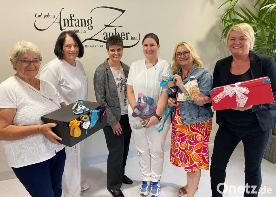 140 Paar Babysöckchen und 200 Euro konnte die Strickrunde des Frauenbunds Neuhaus jetzt an die Station 32 am Klinikum Weiden übergeben. Im Gegenzug gab es von der Frauenklinik etliche Wollknäuel als Dankeschön, womit auch die nächste Söckchen-Übergabe gesichert sein sollte. Das teilt das Klinikum mit.