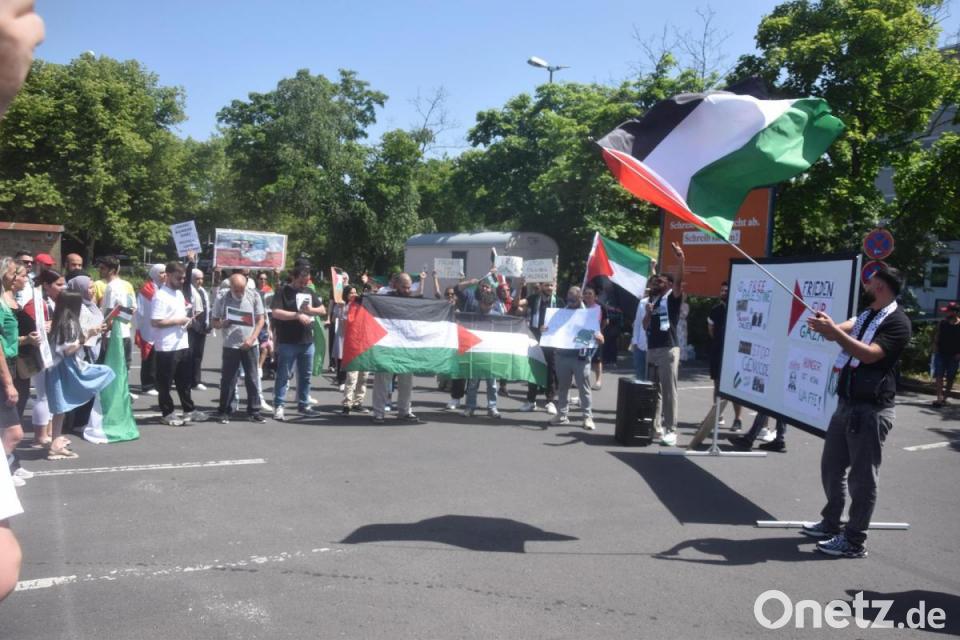 "Free, free Palestine", "Freiheit für Gaza!" und "Israel bombardiert, Deutschland finanziert": Das waren drei von mehreren Parolen, die am Samstag, 14. Juni, auf dem Großparkplatz in Weiden zu hören waren. Eine friedliche Demonstration, um auf die Situation im Gaza-Streifen aufmerksam zu machen, war angekündigt. Friedlich war sie tatsächlich, einen großen Auflauf aber gab es nicht. Weit unter hundert Teilnehmer hatten sich mit Palästinafahnen und Plakaten versammelt. Hinter der Absperrung standen gezählt nicht mal eine Handvoll Interessierter, die sich das anschauten.
