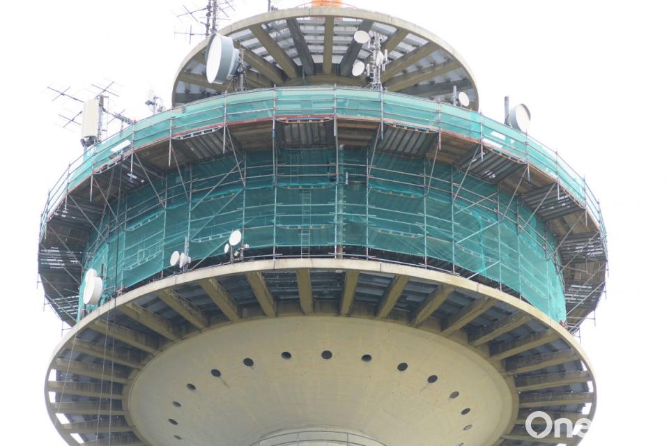 (shl) Den wohl höchsten Arbeitsplatz haben zurzeit die Bauarbeiter auf dem Fernsehturm am Fischerberg. Sie sanieren die Kanzel von Weidens Wahrzeichen in schwindelerregender Höhe von 116 Metern. Wind und Wetter haben dem Beton zugesetzt. Deshalb benötigt der Turm eine neue Versiegelung, wie Benedikt Albers, Manager Communication von Deutsche Funkturm auf Anfrage mitteilt. "Alle 10 bis 20 Jahre braucht es eine Renovierung. Aber im Grunde genommen ist der Fernsehturm für die Ewigkeit gebaut." 1966 hat ihn die Deutsche Bundespost auf der "Geisleite" der Gemeinde Theisseil errichtet. Die Bauarbeiten sind eine Herausforderung. Die Materialien werden über den Aufzug im Inneren transportiert. Die sperrigen Gerüstteile müssen außen per Seilwinde nach oben gezogen werden. Die Facharbeiter arbeiten stets zu zweit auf der Plattform und sind mehrfach gesichert. "Die Sicherheitsvorschriften sind streng", sagt Albers. Bei starkem Wind gehe gar nichts. Mit ein Grund, warum das Projekt noch bis September andauert.