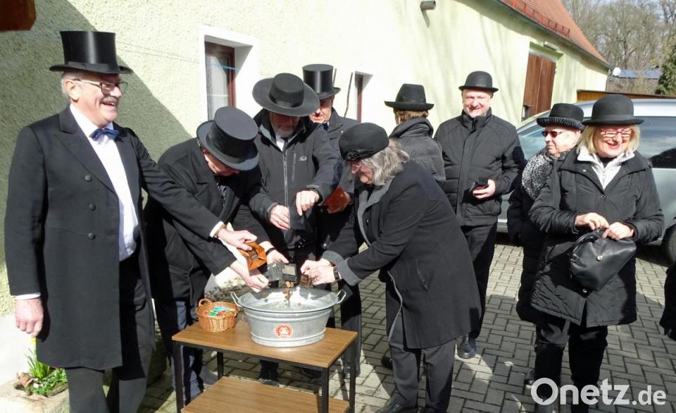 Frisches Wasser mit dem Schöpfer aus dem nahen Bach kam dazu in den Waschtrog. Als Trauerredner fungierte der bewährte Günther Mayer, der des Reimens mächtig ist: „Ja liebe Leut‘, wie wir hier steh‘n beianand, mit eurem schwarzen Trauerg‘wand. Auch seh‘ ich solche, die den Stammtisch genießen, und andere, die stolpern durch Felder oder über Wiesen. Ein bisschen Wehmut ist dabei, der Fasching ist halt vorbei. Und so woll’n mir wies der Brauch ist in Bayern, dieses Ritual nun feiern. Holt's raus die Geldbeutel zum Wasch‘n, aus den Hosen oder Damentaschen. Hoffentlich is‘ wos drin, alte Knickl, dann hängmas auf die Geldbeutel – zum Trocknen auf am Strickl.“