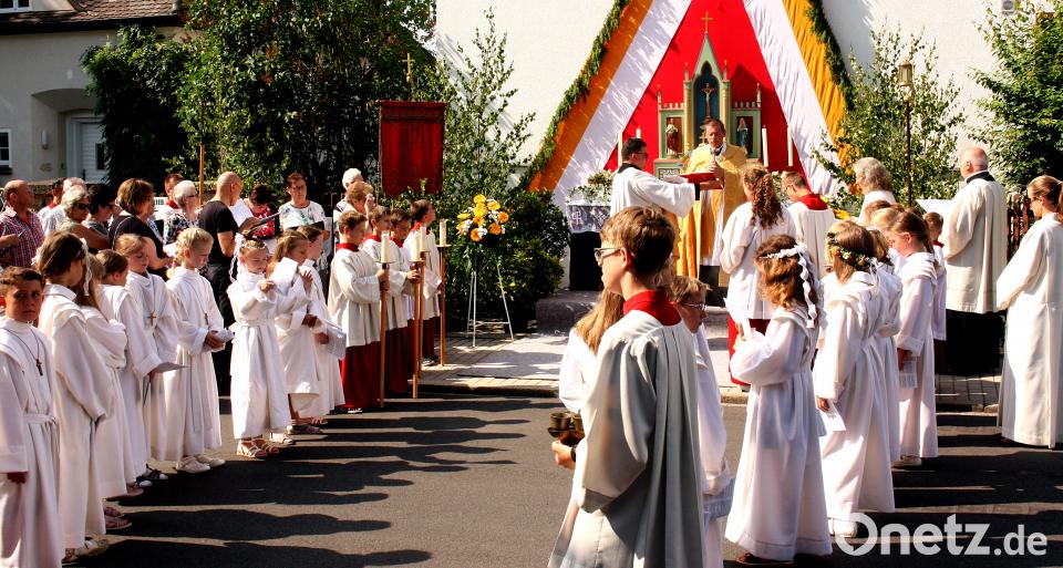 In der Pfarreiengemeinschaft in Maria Waldrast besuchte nach der Messe Pfarrvikar Celestine Joseph Thazhuppil mit den Gläubigen zwei Altäre. Einer war an der Hans-Schelter-Schule aufgebaut der zweite an der Unterkirche. Nach der Feier luden die Pfarreien in das Pfarrheim zum Frühschoppen ein.