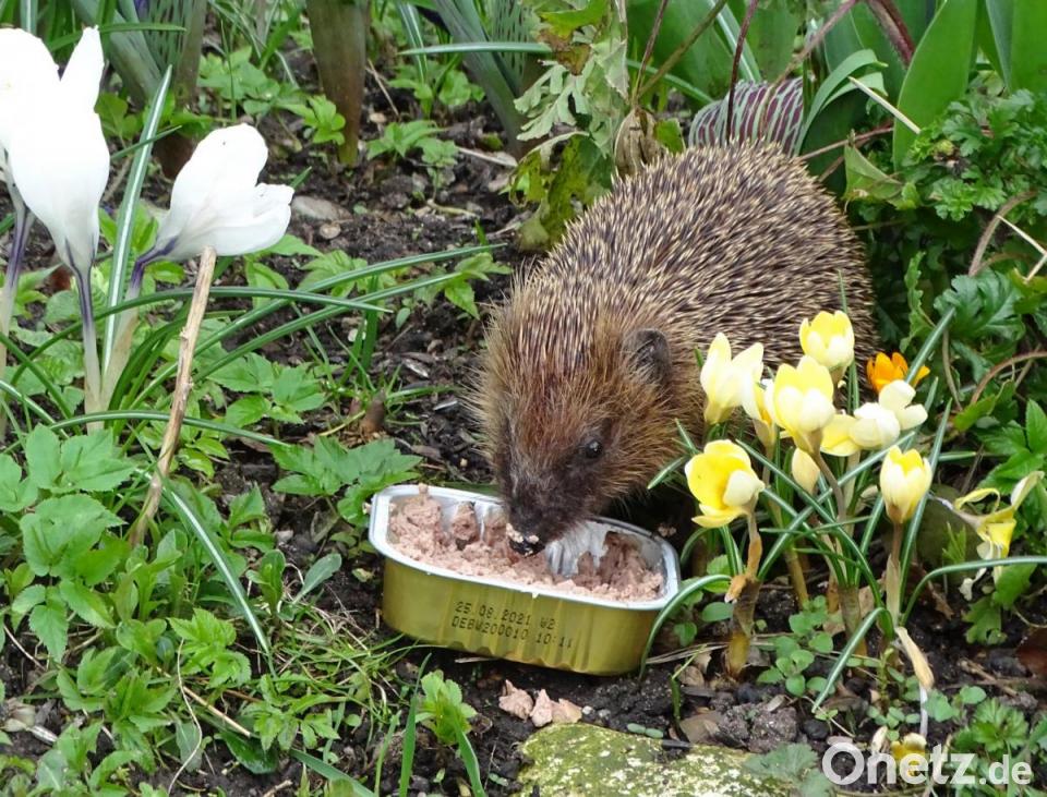 Ein Igel streift durch die Blüten in der Wallensteinstraße. Gerne nimmt er das schnell bereitgestellte Katzenfutter an und schlägt sich den Bauch gehörig voll. Dann tummelt er gesättigt in ein bereitgestelltes Häuschen für ein kleines Mittagsschläfchen.