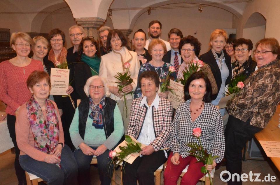 Für 30-jährige Treue wurden Cäcilia Anzenberger und Klara Sellmeyer geehrt. Für 25 Jahre Maria Flor, Tanja Höllt, Marianne Rößler, Marlena Sasse und Rita Schieder. Für 20 Jahre Margareta Gall und Agnes Hartwig. Für 15 Jahre Brigitte Schmidtke und Elfriede Bühner.