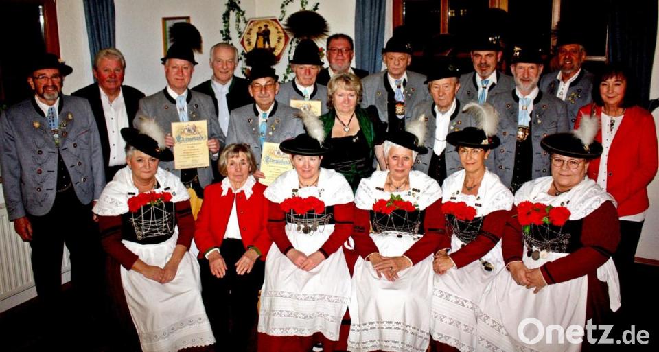 Die Geehrten durften sich dann am Vorstandstisch die Ehrenzeichen des Gauverbandes und die Urkunden abholen. Kurzwart steckte das goldene Edelweiß für 50 Jahre Mitgliedschaft in Dankbarkeit und Anerkennung aktiver Trachtenträger, Helmut Schwägerl, Bernhard Simbeck, Martha Schwägerl, Max Weiß und Hans Zahn an. Das silberne Edelweiß für 40 Jahre erhielten Birgit Guss, Reiner Zellner, Gabi Grau, Anna Süß, Gabi Klinger, Manfred Hofmann, Claudia Högen, Maria Hofmann, Petra Zellner, Angela Zetzlmann, Helmut Guss, Ernst Grünbauer, Hermann Gmeiner, Constanze Gmeiner, Rudolf Bauernfeind, Wolfgang Gmeiner und Lisa Gmeiner. Weiter ging das bronzene Edelweiß an Josef Lang und Silvio Tröger.