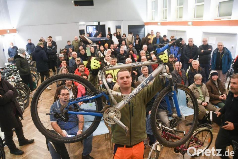 Etwa 100 Besucher hoffen, bei der Versteigerung von Fundrädern im Jugendzentrum Weiden das eine oder andere Schnäppchen zu ergattern. Vom Kinderfahrrad, über Jugendfahrräder bis hin zu Trekking-, Mountainbikes und Elektrorädern ist bei den 82 Drahteseln alles dabei. "Wir hätten noch weitere Räder im Rathaus. Die haben wir aber hier nicht mehr hereingebracht", sagt Thomas Plößl. Der Leiter des Fundbüros der Stadt Weiden führt nach dreijähriger coronabedingter Pause wieder durch die Auktion im JuZ und muss aufpassen, dass ihm kein Gebot durch die Lappen geht. Es geht Schlag auf Schlag. Die Preisspanne der versteigerten Räder reicht von zwei Euro bis zum Höchstgebot von 380 Euro.