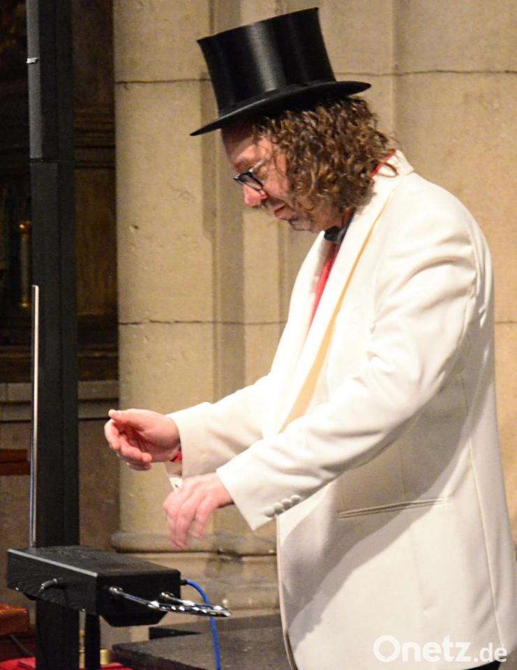 Es lohnte sich am Sonntag in die Kirche zu gehen und zuzuschauen, wie Stefan Schultes mit Zylinder auf dem Kopf monophone Töne aus einem Theremin zauberte. Die Besonderheit: Er erzeugte Klänge, ohne das Gerät zu berühren. Ein Theremin ist ein 1920 erfundenes elektronisches Musikinstrument, das wie von Zauberhand geführt, berührungslos gespielt wird und dabei Töne hervorbringt, wie man sie aus Science-Fiction-Filmen kennt. Das Stück, für das sich Schultes entschied, war „Après un rêve“ von Gabriel Fauré, das Erwachen aus einem Traum.