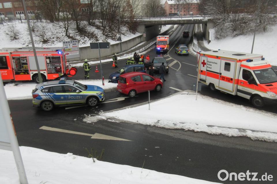 Der Regen, der etwas später Fußwege und dann Straßen zum Teil spiegelglatt machte, hatte noch nicht eingesetzt. Warum der 74-jährige Windischeschenbacher mit seinem Fiat auf die Gegenfahrbahn geriet, statt nach rechts stadteinwärts zur Bahnunterführung weiterzufahren, ist noch nicht klar. Er stieß mit dem entgegenkommenden BMW eines 56-jährigen Schönseers zusammen. Er wurde ebenso vorsorglich vom Roten Kreuz ins Klinikum gefahren wie seine Frau und der Windischeschenbacher. Der Unfall passierte direkt vor den beiden Frauen, die mit einem roten Opel, der nach links aus der Nikolaus-Otto-Straße in Richtung Unterführung abbiegen wollte. Die Besatzungen von zwei Rettungswagen des Roten Kreuzes sowie die Feuerwehr waren vor Ort. Die Polizei beziffert den Schaden auf insgesamt 6000 Euro.