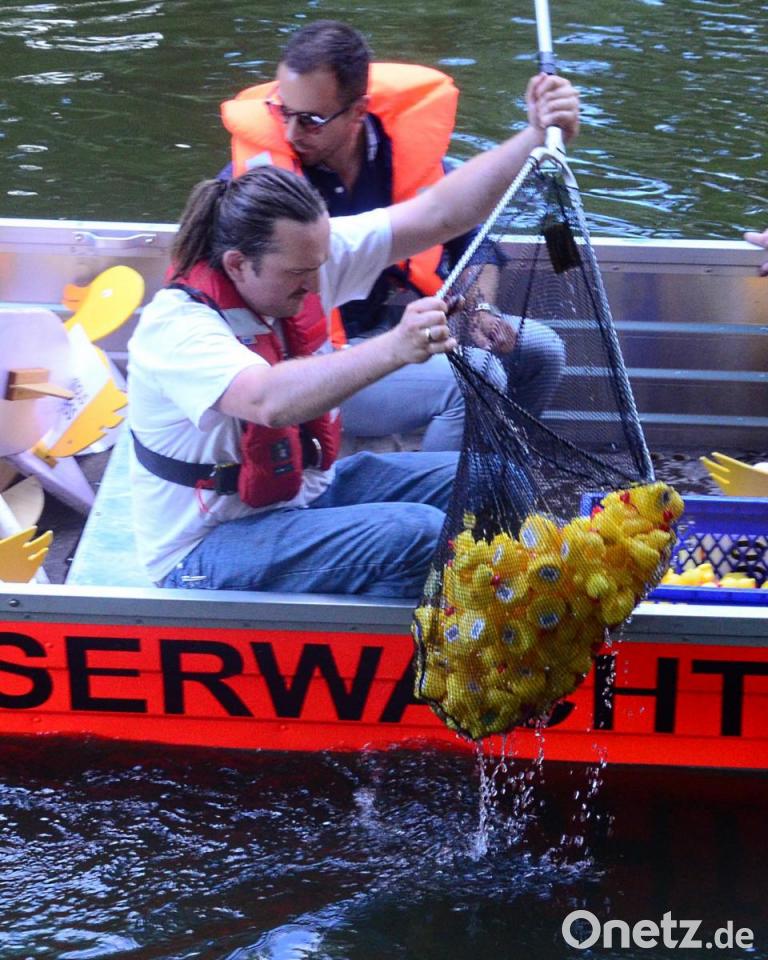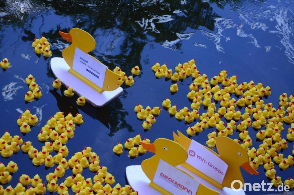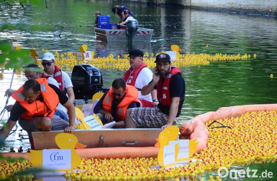 Die Startgebühr pro Ente: Drei Euro. Die mit Nummern versehenen gelben Gummtiere wurden von der Brücke Friedrich-Ebert-Straße in die Naab gekippt und schwammen dann bis zu den Max-Reger-Park-Treppen. Die Starter mit den schnellsten Gummi-Enten gewannen Preise.