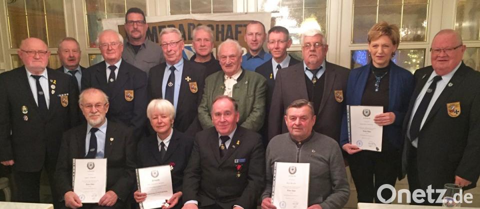 Zwei davon erhielten eine besondere Ehrung: Das Bronzene Ehrenkreuz für besondere Verdienste um die Kameradschaft erhielt Herbert Kraus und den Verdienstorden in Gold mit Rubin verlieh der Vorsitzende an Anneliese Kiener.