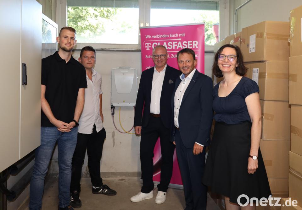 Die Richtlinie zur Förderung von Glasfaseranschlüssen und W-Lan für öffentliche Schulen, Plankrankenhäuser und Rathäuser finanziert die Anbindung der Schulen an das Internet über gigabitfähige und durchgängige Glasfaserleitungen bis in die Gebäude. Die Deutsche Telekom hat als Auftragnehmer dafür rund 1030 Meter Tiefbauarbeiten durchgeführt, sieben neue Glasfaserverteiler gebaut und 4130 Meter Glasfaserkabel eingeblasen. Darüber hinaus wird die Telekom bis zum Jahresende auch das Augustinus-Gymnasium, die Clausnitzerschule, die Max-Reger-Schule, die Pestalozzischule und die Wirtschaftsschule mit Glasfaseranschlüssen versorgen.