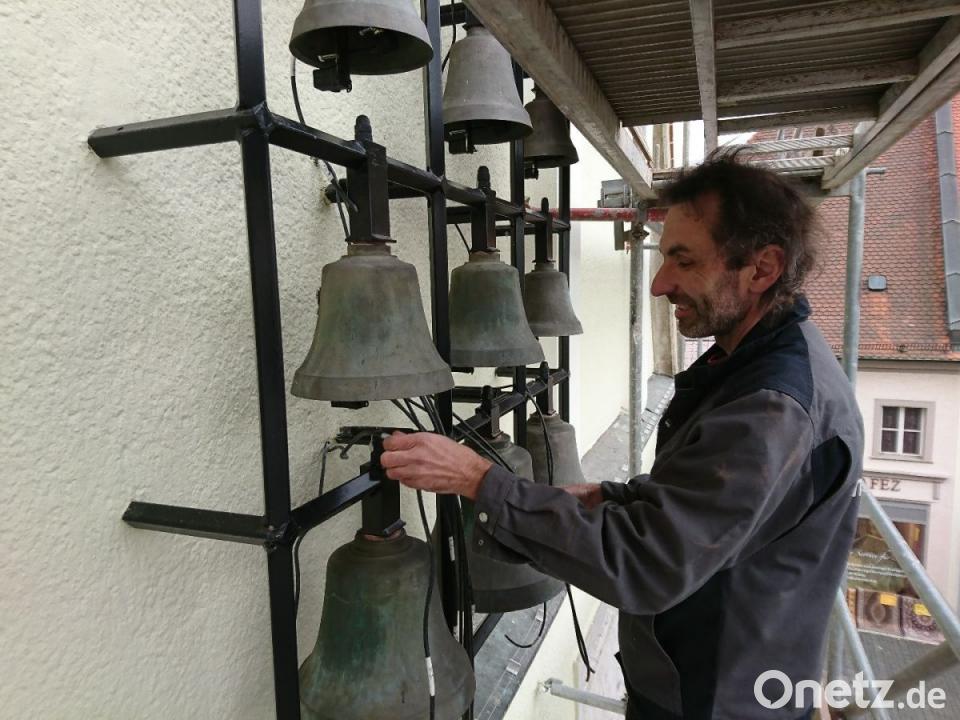 Bereits Anfang Mai mussten die 24 Glocken an der Giebelfassade des Alten Rathauses weichen. Erstens: Weil das Wahrzeichen der Stadt generalsaniert wird. Und zweitens: Weil auch das Glockenspiel, 1983 ein Geschenk des Rotary-Clubs an die Stadt, in die Jahre gekommen war. Die Kabel waren durch die Witterung brüchig geworden, die Halterungen verrostet. "Zudem war die Elektronik der 24 Glocken veraltet und kaum mehr Ersatzteile für Klöppel zu bekommen", informiert die Stadt. Nun aber ist es geschafft. Fast.