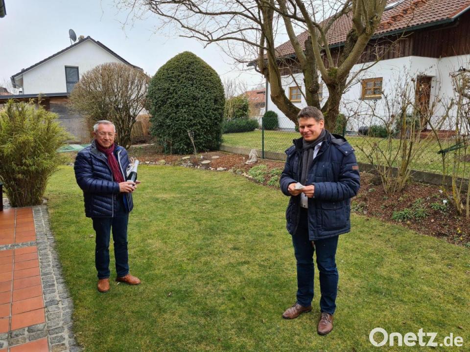 Fraktionsvorsitzender Benjamin Zeitler besuchte Gerd Hofmann in seinem Garten, überbrachte die Glückwünsche der Fraktion und dankte ihm für seinen langjährigen politischen Einsatz. Vor genau 20 Jahren wurde Gerd Hofmann zum Ehrenfraktionsvorsitzenden und Ehrenmitglied ernannt. Diese Ehrung sei nicht von ungefähr gekommen, sondern zeige welch großartiger politischer Einsatz dahintersteckt. 34 Jahre lang war Hofmann Stadtrat, davon 21 Jahre Fraktionsvorsitzender. Mehr als zwei Drittel seines Lebens gehört er der Christlich-Sozialen Union an, betonte Zeitler. "Das verdient Respekt und Hochachtung."
