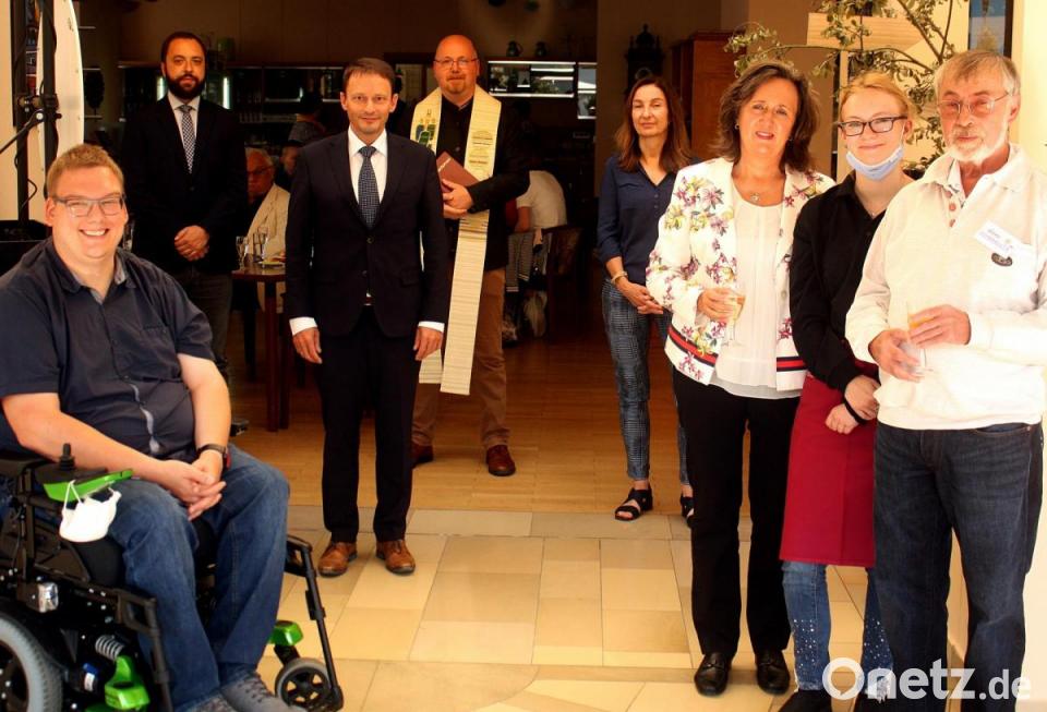 Oberbürgermeister Jens Meyer freute sich, nun eine Begegnungsstätte wieder zu eröffnen, die in Coronazeiten schmerzlich vermisst wurde. „Jene, die allein sind, keinen Kontakt finden und das Haus hier als leeres Gebäude vorfanden, können nun kommen. Grenzenlos, so wollen wir alle bleiben. Im Rathaus erfüllen wir die Quote, auch in diesem Hause soll es weitergehen. Wir wollen uns alle den Traum erfüllen“, sagte Jens Meyer. Stellvertretender Dekanatsleiter Tobias Ebnet sieht diesen Begegnungsort als einen Gewinn für die Stadt. Er wünschte den Mitarbeitern und auch den Bürgern und Besuchernviel Entspannung. Leiterin des Hauses Susanne Meichner: „Hier ist jeder willkommen im Café. Es ist unser Herzstück.“ Auch Behindertenbeauftragter Alexander Grundler stand immer mit Rat und Tat zur Seite.