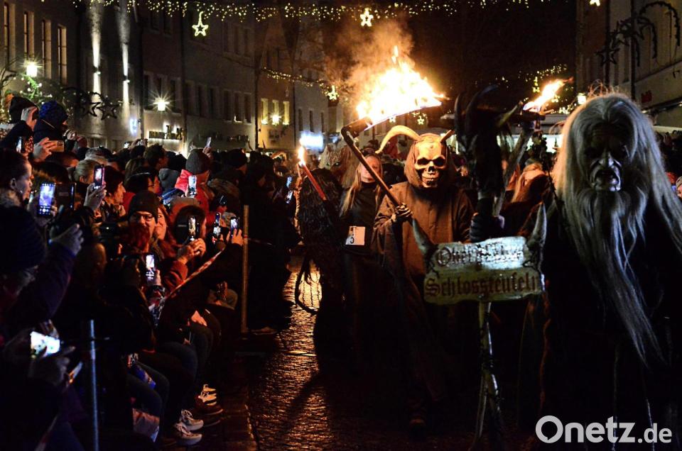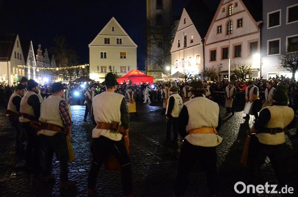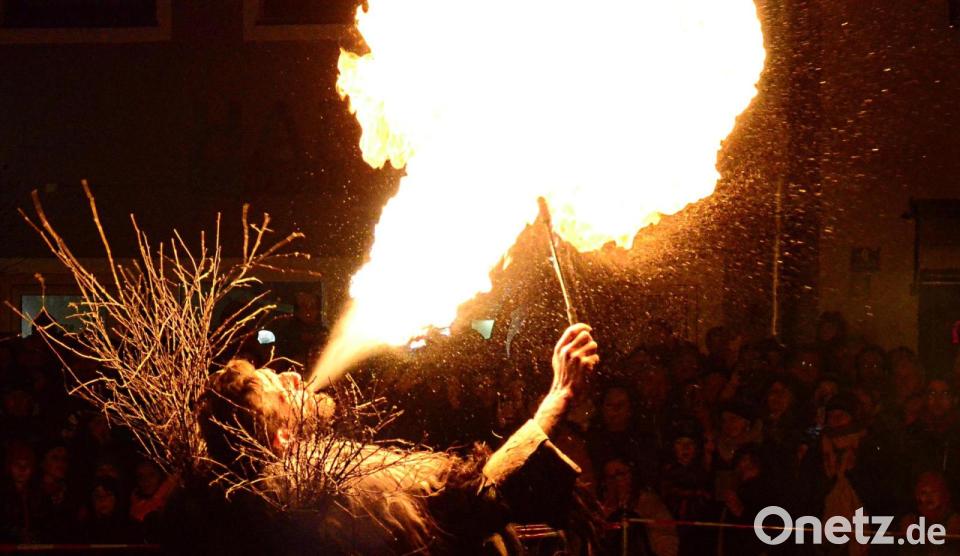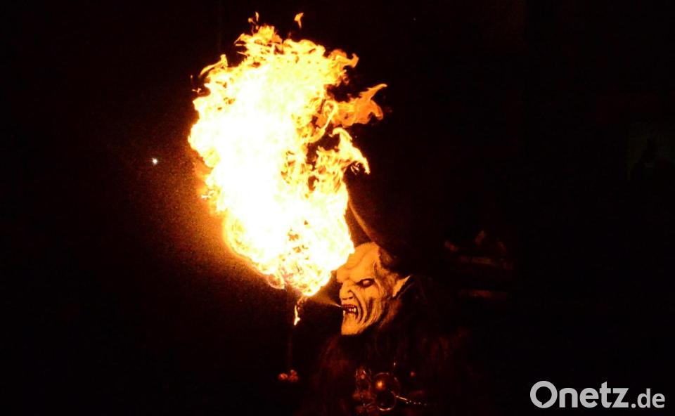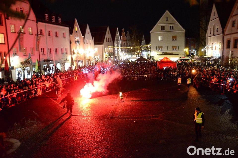 Aus den riesigen Lautsprecherboxen dröhnt der AC/DC-Kracher "Highway to Hell". Auf dem Platz vor dem Alten Rathaus krachen Böller. Feuerwerksraketen steigen hoch. Monster mit furchtbaren Fratzen schwingen bengalisches Feuer. Hexen auf Besen und Vampire mit frisch geweißten Eckzähnen wirbeln um eine Feuerstelle herum, die mitten auf dem Marktplatz brennt. Der zweite Weidener Raunachtlauf wird zu einem opulent ausgestatteten Mix aus Goaßlschnalzern und hässlichen Gestalten. Und 5000 Menschen schauen zu.