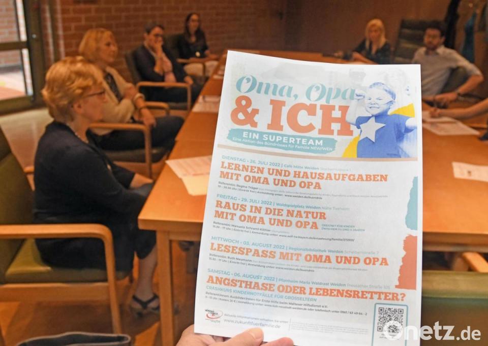 "Wir müssen mehr auf das Thema Großeltern und deren Umgang mit Enkelkindern aufmerksam machen", appelliert Träger. Gemeinsam mit dem Bündnis für Familie Neustadt-Weiden und weiteren Organisationen findet dieses Jahr deshalb die Aktion "Oma, Opa und ich – ein Super-Team" statt. Insgesamt gibt es vier Veranstaltungen – alle Ende Juli und Anfang August. Vorgestellt wurde das Programm im Neuen Rathaus in Weiden von den jeweiligen Kursleitern. Kinder und Großeltern können sich vor Ort informieren, wie sie gemeinsam Hausaufgaben machen, Spaziergänge spannender gestalten oder welche Bücher sich am besten zum Vorlesen eignen. Aber auch ein Erste-Hilfe-Kurs steht auf dem Plan. Detaillierte Informationen rund um die Kurse und Information zur Anmeldung gibt es unter www.zukunftfuerfamilie.de.