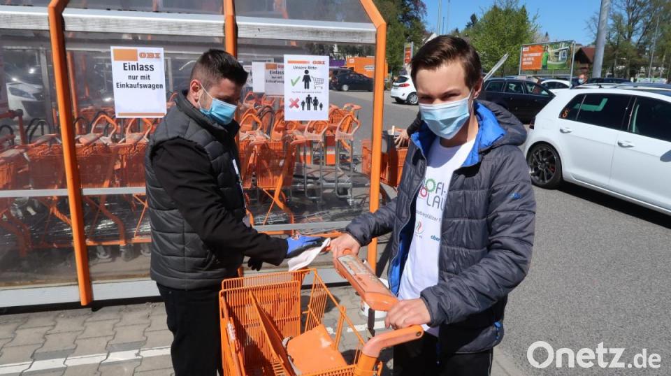 Beim benachbarten Obi-Baumarkt waren die Voraussetzungen ähnlich. Auch hier musste jeder Kunde einen Wagen „ziehen“. Einer der Security-Männer reinigte mit Desinfektionstüchern aus Angst vor dem Virus die Griffe an den Einkaufswagen. „Neben der Pflicht, einen der Wagen zu benutzten, muss bei uns jeder Kunde eine Maske tragen", betonte ein führender Mitarbeiter des Baumarkts. „Das Kundenaufkommen ist hoch und gekauft wird alles, was unser Baummarktsortiment anbietet.“ Eine übermäßige Kauflust der Weidener wollte er allerdings nicht feststellen.