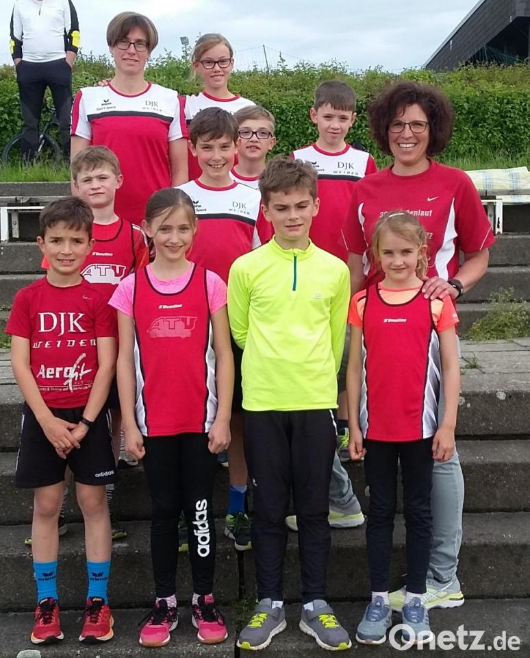 Die Teams gaben in den Disziplinen Hindernislauf, Kugel- bzw. Medizinballstoßen, Biathlon oder Crosslauf, Fünfsprung sowie Hochweitsprung das beste. Der Leichtathletik-Nachwuchs der DJK Weiden trainiert erst seit März zusammen. Dennoch bewiesen die jungen Sportler, dass der Spaß, die Anfeuerungen der Eltern und die Freude am Sport zu Höchstleistungen anspornt. Die Belohnung wurde mit Jubel in Empfang genommen: In der U12 erreichten Lukas Rosner, Paul Leistner, Hannah Schieder Hannah und Dennis Hopp den zweiten Platz. Die Mannschaft der U10 mit Lilli Werner, Vincent Steiner, Sofia Kovtova, Ferdinand Beierl und David Schönberger durfte über den ersten Platz jubeln.