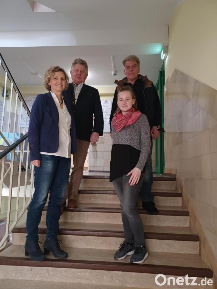 Sie helfen bei der Unterbringung der Geflüchteten: (vorne, von links) Christa Neubauer-Kreutzer, Geschäftsführerin Kreishandwerkerschaft Nordoberpfalz, Corinna Zötzl, Angestellte, (hinten, von links) Erich Sperber Vorstand, Wolfgang Seifried stellvertretender Vorstand Verein "Handwerkerhaus e. V.".