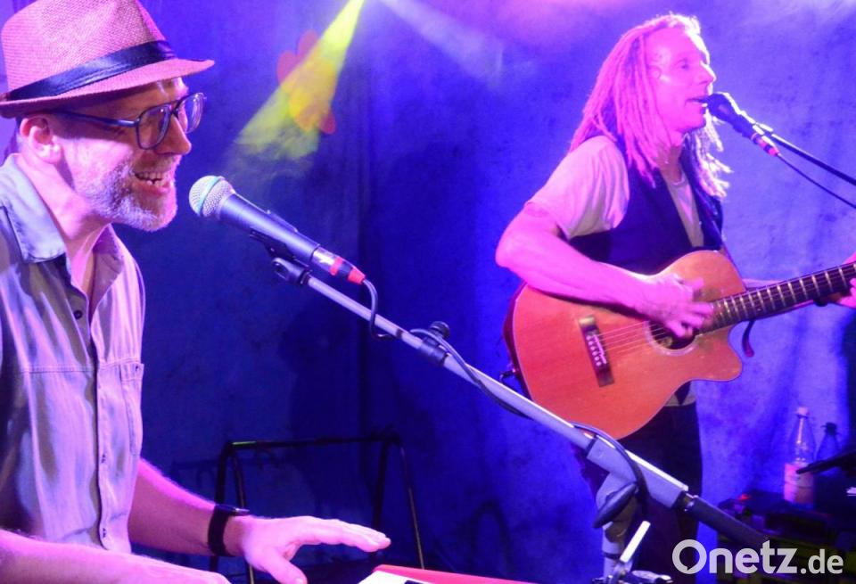 Bevor es auf der "Live-Stage" zur Sache ging, gab es ein Geburtstagsständchen zum 90. für den "Parapluie-Opa" Alfred Gottschalk. Dann kamen Hannes Wölfel und sein Partner Stefan Haußner am Piano aber sowas von sofort auf Touren. Fünf der gespielten Songs waren eigene Musik. Der Rest waren Coverversionen aus 40 Jahren Musikgeschichte. Alle neu interpretiert, aber nicht verfälscht. Trotz der großen Europameisterschaftskonkurrenz war der "Kulturbahnhof" am Freitagabend sehr gut gefüllt. Unter Dampf stand er ohnehin. Dafür sorgten schon die tropischen Temperaturen.