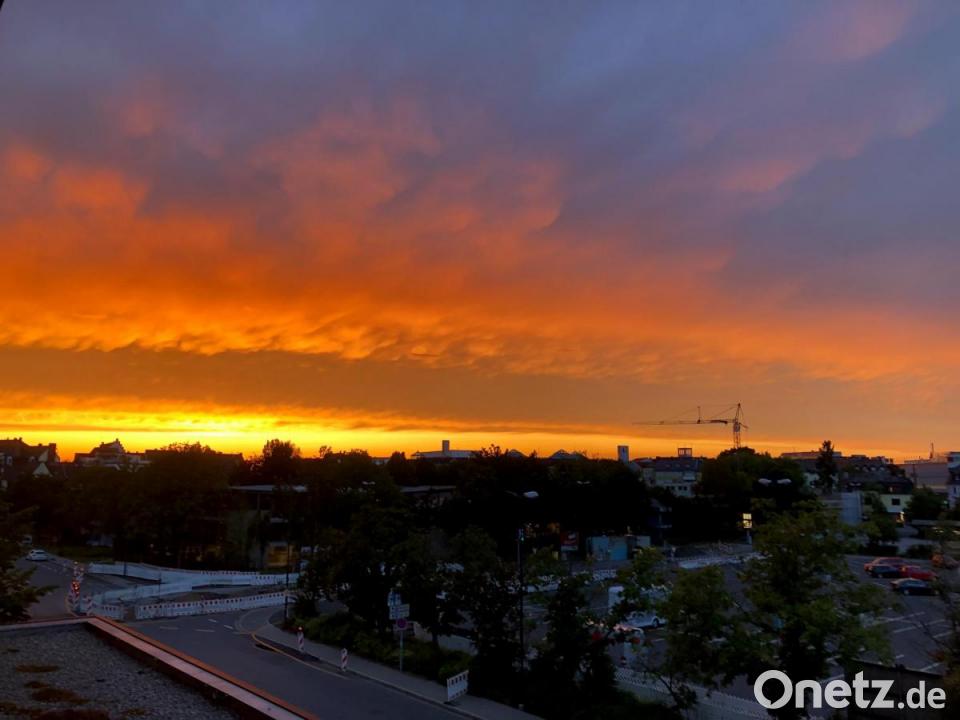 Wenn die Sonne untergeht, sorgt sie manchmal für ein friedliches Abendrot. Wenn dann noch die Wolken tief hängen, sieht es aus, als ob der Himmel brennt.