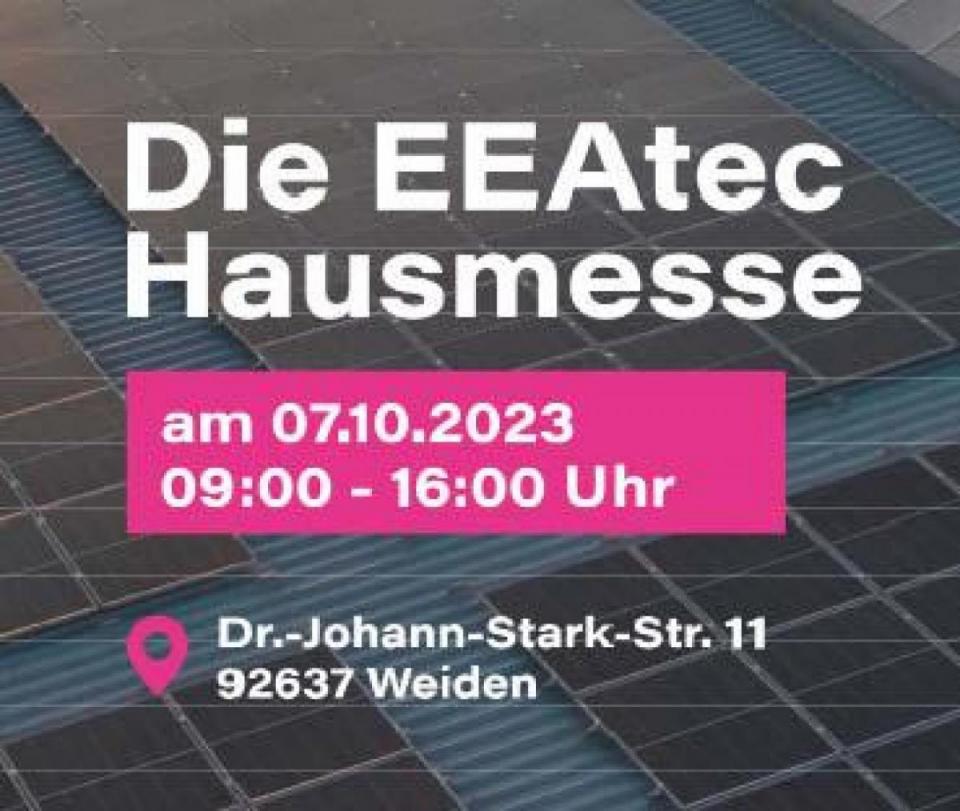 Die Firma EEAtec präsentiert sich und ihr Leistungsspektrum Interessierten aus Industrie, Gewerbe, Handwerk sowie privaten Besitzern von Wohnhäusern bei der Hausmesse am 7. Oktober, und zwar unter dem Motto: „Strom aus der Kraft der Sonne – PV-Technik, Energie- Speichersysteme und E-Mobilität aus der Hand von Profis“. Partneraussteller bei der Hausmesse sind die Firmen VARTA mit Speichersystemen, SONNENKRAFT mit Modulen, Speichern und Wechselrichter, KOSTAL mit Wechselrichtern, KEBA mit Wallboxen und SLRack mit Unterkonstruktionen für Module. Die Experten informieren über Photovoltaikanlagen für Neu- und Bestandbauten sowie Anlagen mit auslaufender Kfw-Förderung und deren Weiterführung.