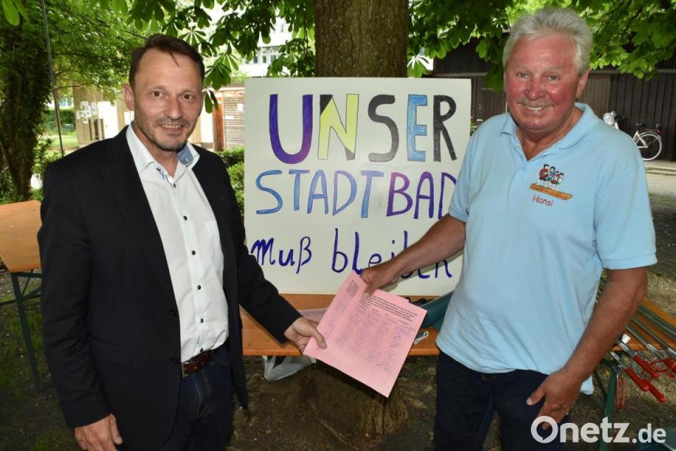 Das Jahr 2023 macht den Stadtbad-Freunden Angst. „Die Badesaison wird beeinträchtigt“, hatten Meyer und Tubifato angekündigt. Fördervereins-Vorsitzender Forster übergab an Meyer eine Liste mit knapp 50 Unterschriften. Darin fordern die Bürger die Verantwortlichen auf, alles für den Erhalt des Stadtbads und die Möglichkeit zum Schwimmen zu tun.