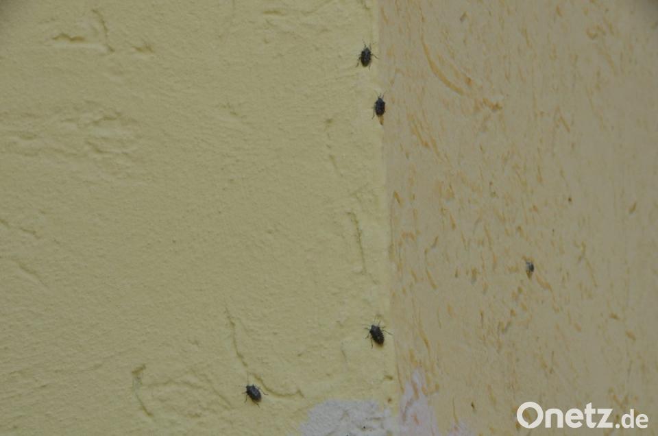 "Sie sitzen in jeder Ritze oder auch am Fenster. Ich finde schon, dass es mehr sind als sonst", sagt Brüderer. Sie habe sich gleich schlau gemacht und stieß im Internet auf die Grüne Stinkwanze. Froh ist sie, dass es sich hierbei um keinen ausgewiesenen Schädling handelt. "Die tun auch dem Mauerwerk nichts." Diese Art ernährt sich von Pflanzensäften. Sein grüner Panzer zeigt, dass es sich um eine Nymphe handelt. Die Wanze kennt sie vor allem vom Blaubeersammeln, erzählt sie. "Die 'Schwoarzbeer Gougln' sitzen gerne in den Sträuchern, und wenn man mit der Hand zugreift, dann stinkt's." Ihre Art, sich bei Bedrohung zu wehren.